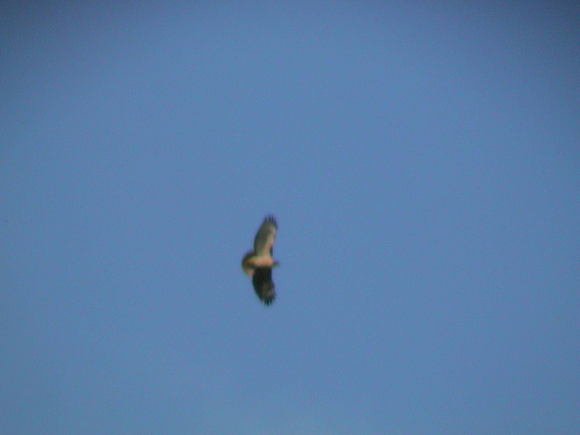 up view of a red tail hawk in flight