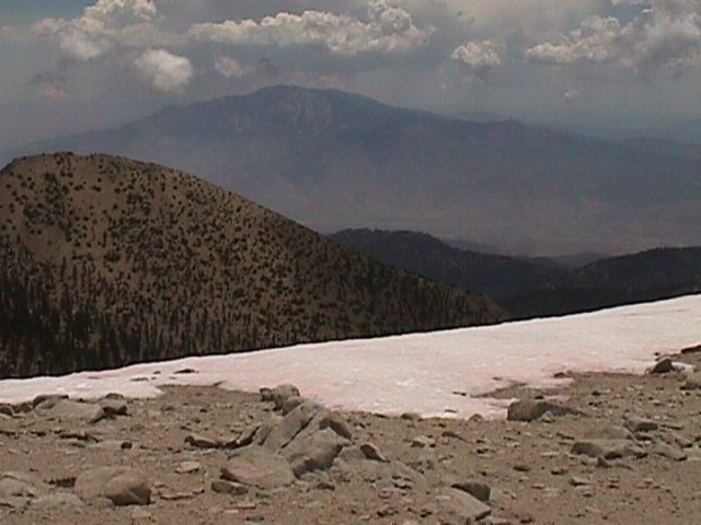 San Gorgonio Peak is the highest mountain in Southern California. It stands at 11,500 feet. Snow lingers on the peak well into summer. Patches of 2-5 foot drifts can sometimes be seen all year long... even though this mountain is less than 30 miles from Palm Springs, where summer temps climb well into the 3 digits for weeks at a time.