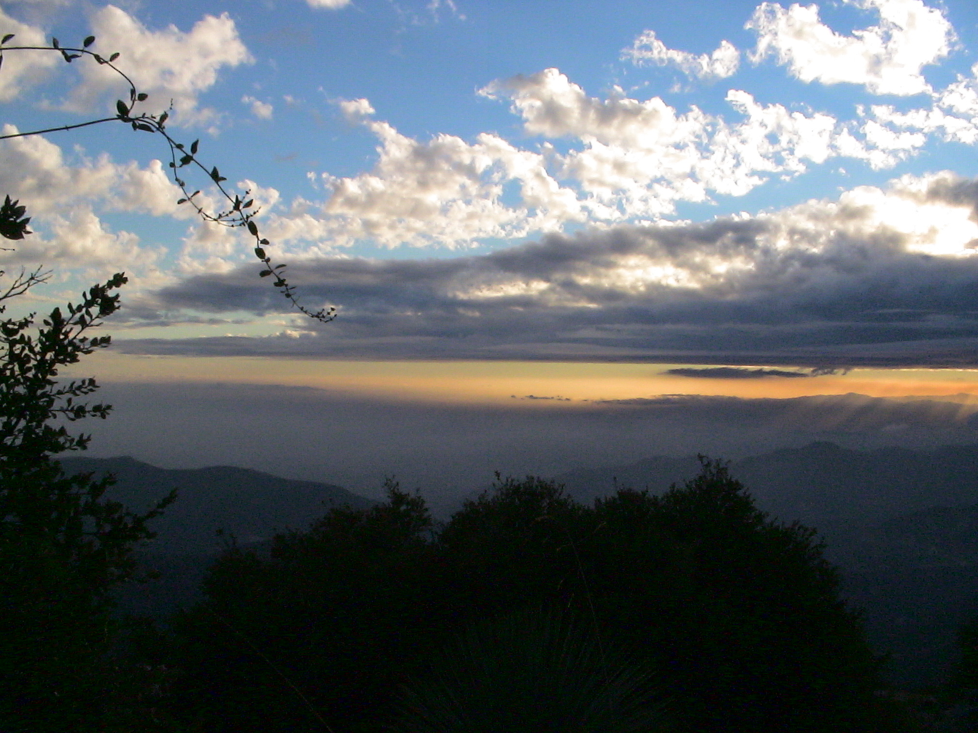 This 6164' precipice peak is the closest "mountain" to Los Angeles. On October 15, 2005 I spent the night taping the first winter storm as it moved in. Temps dropped to the mid thirties, the wind howled, then came rain, sleet, hail and snow. It was a beautiful night. There's no such thing as bad weather.. just inappropriate clothing.